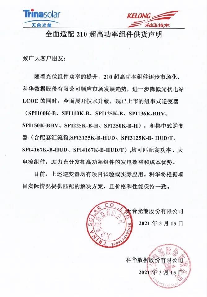 在光伏领域,科华光伏逆变器解决方案以高可靠、高性能、高适配的特点以及核岛级品质,打造了一系列标杆项目,积累了全球累计装机量13GW。近日,公司正式宣布旗下逆变器产品全面适配210组件且可批量出货,成为当前大电流逆变器产品线最全的企业之一。